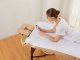 Koc grzewczy o wymiarach 185x80cm z regulacją intensywności i timerem. Dziecko ma gumki na rogach.