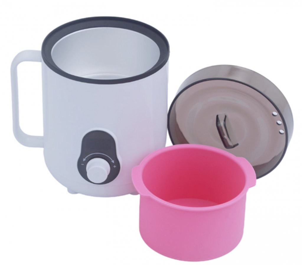 Podgrzewacz wosku z regulacją temperatury od 30°C do 120°C do wosków depilacyjnych w puszkach, granulatu depilacyjnego. Pojemność ok. 400 ml.