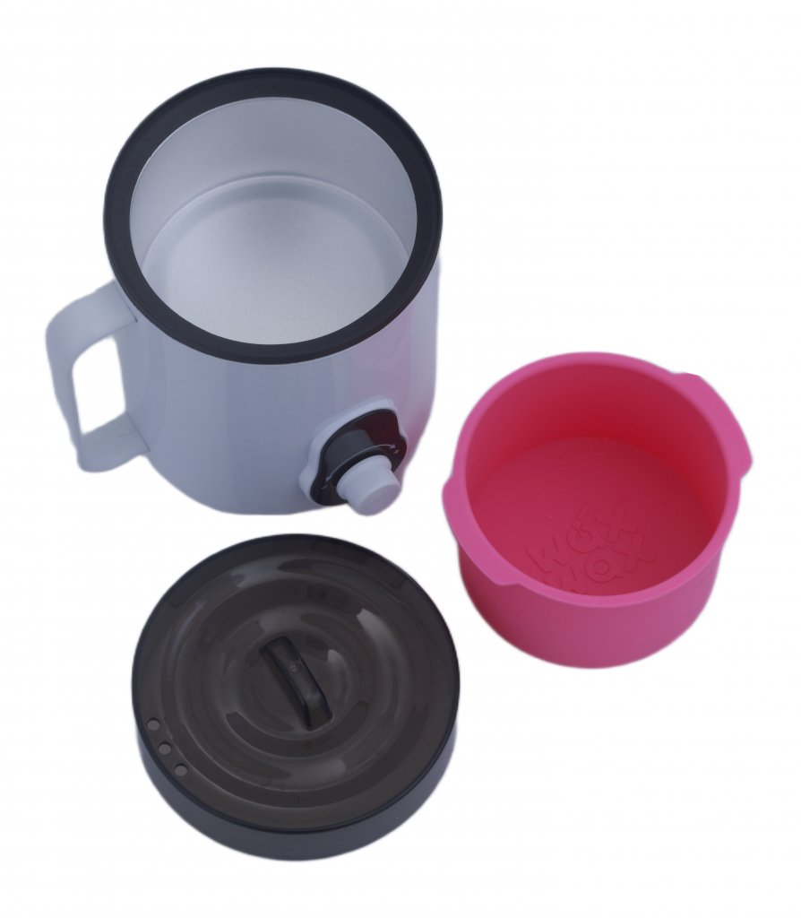 Grzejnik posiada płynną regulację temperatury. Szybko nagrzewa wosk i utrzymuje stałą temperaturę dzięki pokrywce.