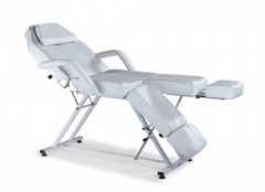 Hydraulicznie regulowany fotel do pedicure ze składanymi na bok podnóżkami. Krzesło można obracać w lewo i prawo od podstawy z możliwością zablokowania w żądanej pozycji.
