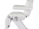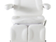 Fotel do pedicure z elektryczną regulacją wysokości, oparcia i pochylenia siedziska za pomocą ręcznego sterownika. Ręcznie niezależnie regulowane części nóg, w tym regulacja do boku krzesła.