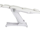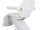 Pięknie wykonany biały fotel kosmetyczny z 4 silnikami. Elektrycznie regulowana wysokość krzesła, kąt siedziska, kąt oparcia i podnóżka.