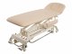 Leżanka z elektryczną regulacją wysokości na kółkach i sterowaniem ramowym, składane podłokietniki. Ergonomiczne wycięcie na twarz.