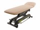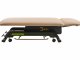 Elegancki leżak elektryczny z kółkami i regulatorem konstrukcyjnym do regulacji całkowitej wysokości.