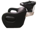 Wygodna myjnia fryzjerska w kolorze czarnym. Podstawa pod ceramiczną misą matowo–metaliczna.