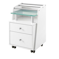 Nowoczesny stolik na kółkach. Dostępny w kolorze białym.