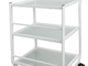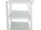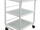 Ładnie wykonany stół z trzema szklanymi półkami.