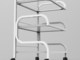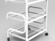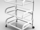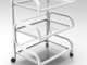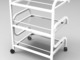 Ładnie wykonany stół z trzema szklanymi półkami.