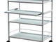Metalowy stół z półkami ze szkła hartowanego. Druga półka jest wysuwana.