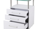 Piękny stolik z półką ze szkła hartowanego i 3 szufladami. Stół jest ruchomy.